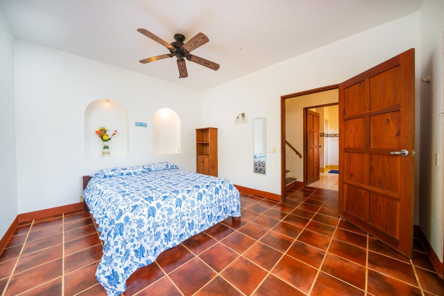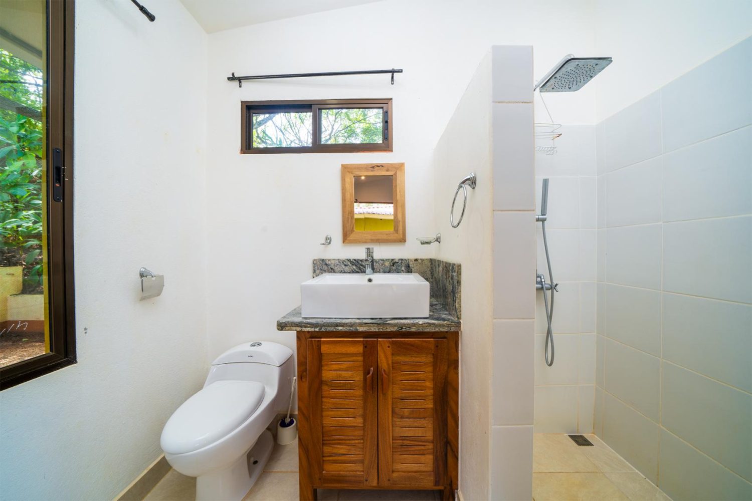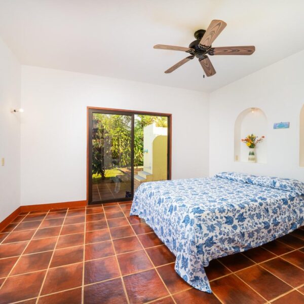 Next to the main house a private guesthouse awaits. This separate living space includes its own ensuite bathroom, built-in walk-in closet, large glass doors, and a private balcony overlooking the lush garden, providing comfort and privacy for guests or potential rental opportunities.