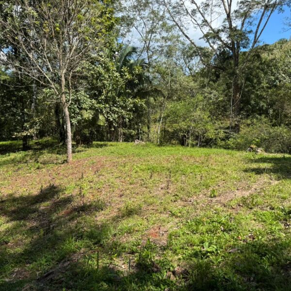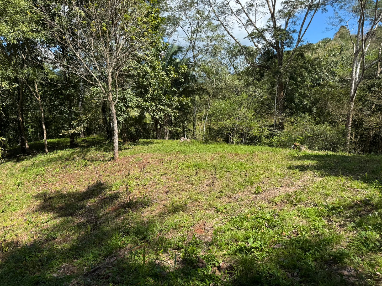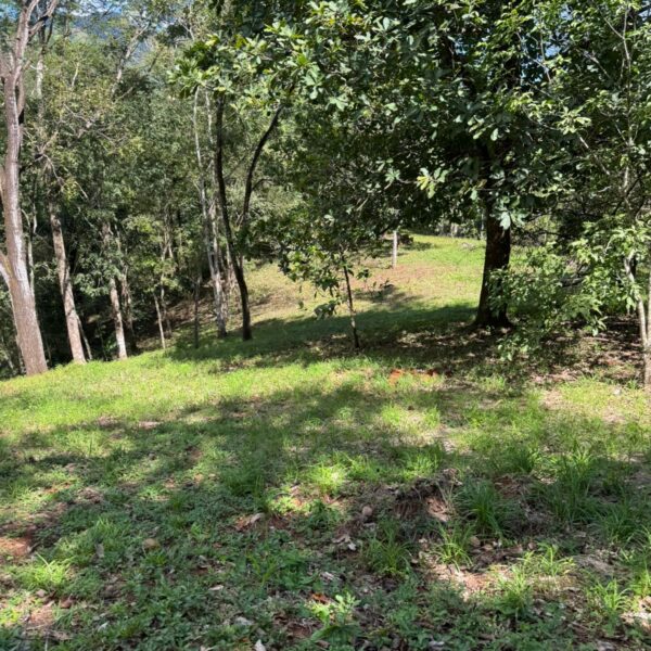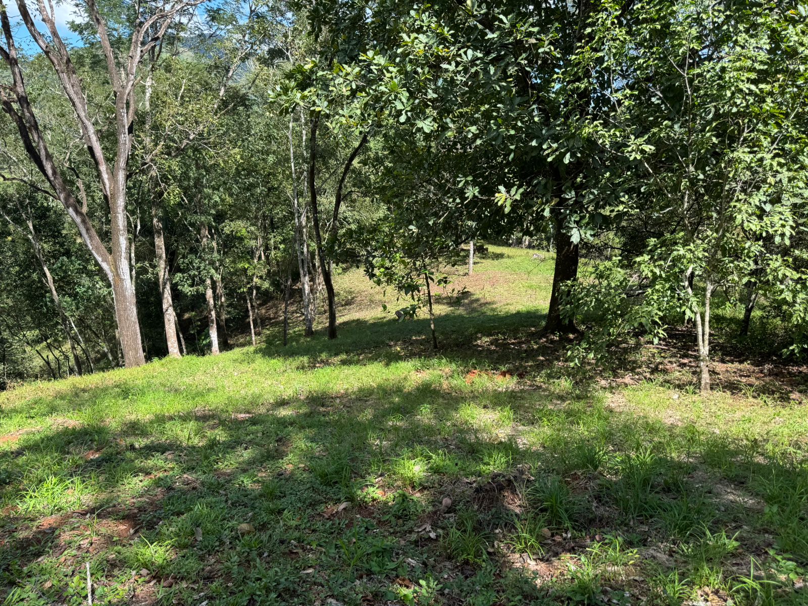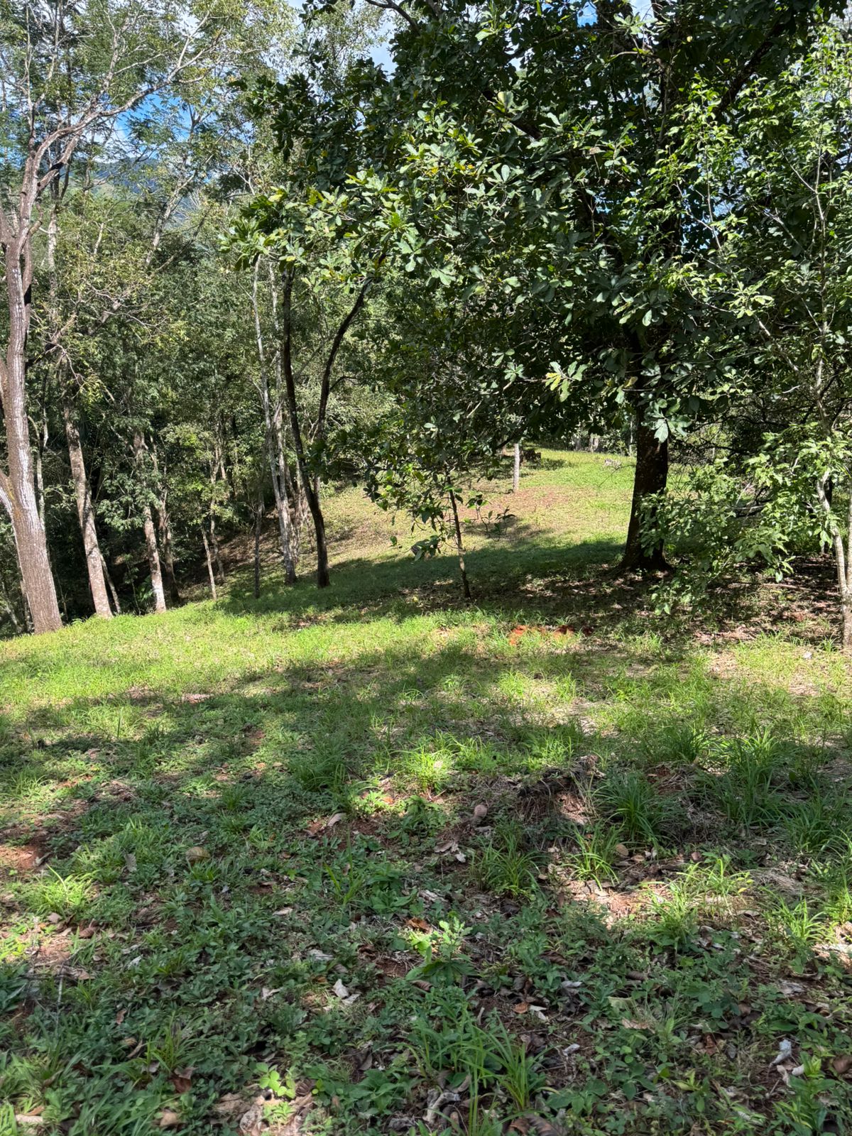 There are a few beautiful home sites to build a nice house and while building one could live in the little 50m²house which belongs to the property. The house is simple but habitable if renovated. Apart from the water in the rivers there is spring water from the neighboring property. The owner would be willing to bring the public water to the property if needed. The access is year around very good and public electricity is near the property. There are also quite a few fruit trees on the land (lemons, oranges and avocado) and trails have been put in already.